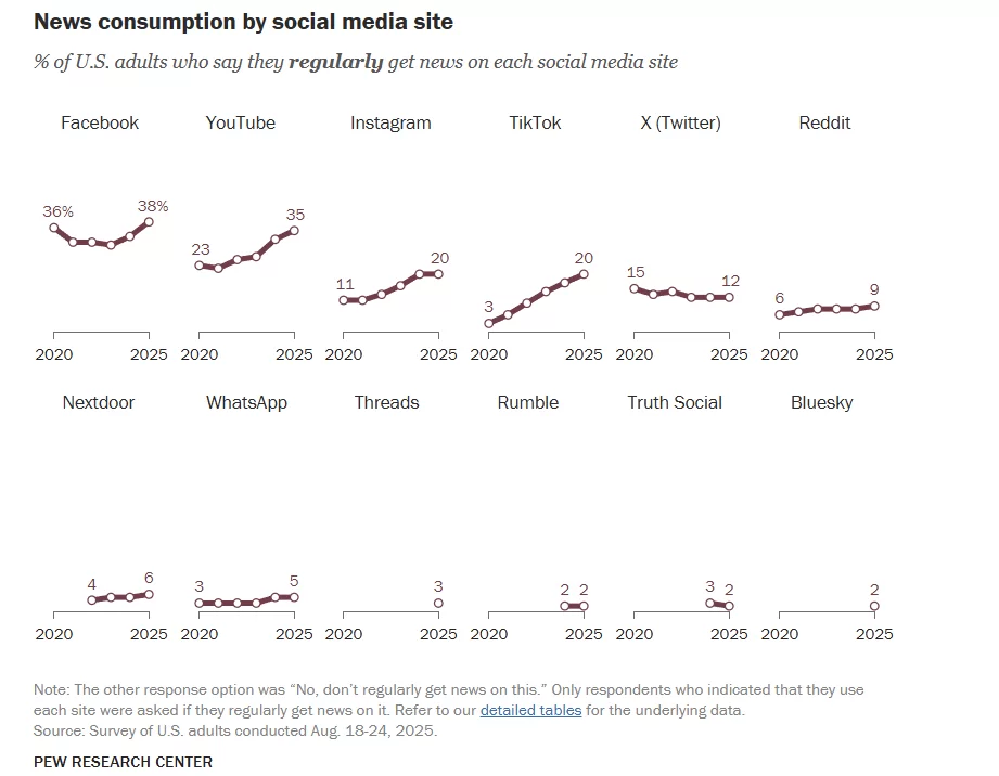 Pew Research Center. Social Media and News Fact Sheet. 2025